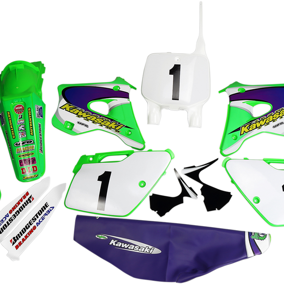 Caracteristicas: Change up the look of your ride Each kit includes front fender, rear fender, radiator cover, side panels, front number plate, seat cover and graphics