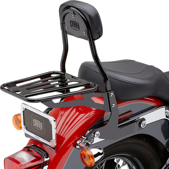 Caracteristicas: A detachable backrest offers the best of both worlds for a rider The docking hardware kit is included, mounting directly to your Harley's fender rails Allows you to easily remove and install the backrest onto your bike in a matter of seconds If you need more storage space, the optional Cobra luggage rack mounts directly to the Cobra backrest Pad measures 6" W x 5" H x 2" D