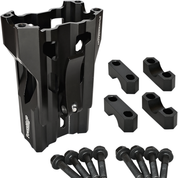 Caracteristicas: The PowerMadd adjustable bar riser lets you instantly raise or lower your handlebars up to 3" Go from stand-up bookdocking to trail riding Share a sled with someone who likes a different bar height Easy to install on any "T" style steering post; wide or narrow Flat top steering post requires a pivot adapter, which adds another 1-1/4" in height Check cable slack; PowerMadd offers throttle cable and brake line extensions
