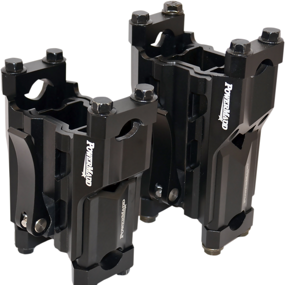 Caracteristicas: The PowerMadd adjustable bar riser lets you instantly raise or lower your handlebars up to 3" Go from stand-up bookdocking to trail riding Share a sled with someone who likes a different bar height Easy to install on any "T" style steering post; wide or narrow Flat top steering post requires a pivot adapter, which adds another 1-1/4" in height Check cable slack; PowerMadd offers throttle cable and brake line extensions