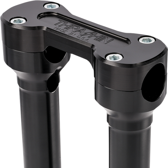 Caracteristicas: Billet 6061 aluminum Drilled with 1/2" hole for internal wiring Works with any standard 1" handlebar Sold in pairs with top clamp and 5/16-18 x 7/8" hardware Base hole tapped for standard 1/2" x 13 mounting bolts (bolts not included) Fits on all models with 3.5" center on center riser spacing, including most OE Harley-Davidsons Made in the U.S.A.