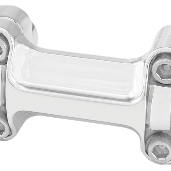Caracteristicas: Provides added support to cover the extra stress caused by tall ape hangers Four-bolt risers accept stock or aftermarket 1" diameter bars Drilled and tapped for 1/2"-13 mounting bolts Pinch bolts included Made in the U.S.A.