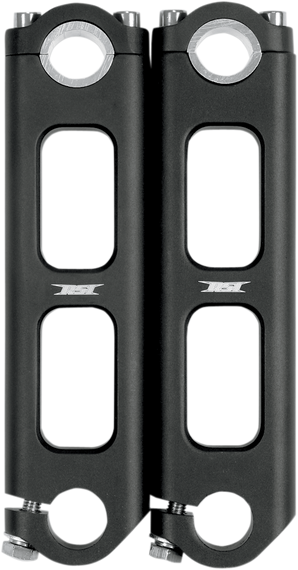 Caracteristicas: Dual-pivoting adjustability allows the rider to comfortably position the handlebar Constructed of 6061-T6 aircraft aluminum which resists bending and twisting Includes custom inserts that allow the riser to fit stock 7/8" handlebars and oversize 1-1/8" handlebars For use with pivot-style steering posts or steering posts with adapter tubes Rise is measured from center to center