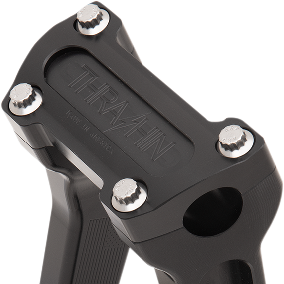 Caracteristicas: Constructed of 6061 aluminum Both pullback and straight riser options have top clamps angled at 35 Fits all models with 3-1/2" center-to-center riser spacing Work with any standard 1" handlebar Top upper clamp bolt is 4-1/2" center-to-center Base hole tapped for standard 1/2" x 13 mounting bolts (bolts not included) Sold with top clamp and hardware Made in the U.S.A.