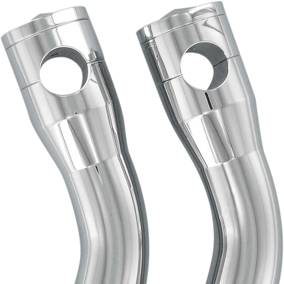 • Chrome billet aluminum risers feature the unique concept of a removable cover that hides the upper handlebar clamp bolts