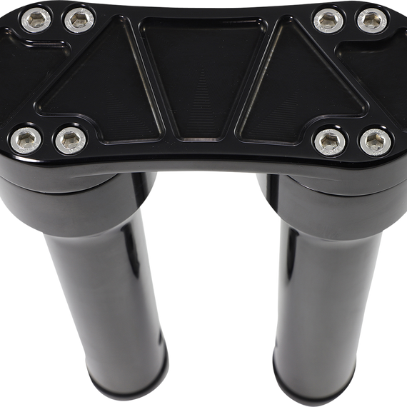 Caracteristicas: Bandit risers fit 1-1/8” ProTaper style handlebars on standard Harleys and many metric bikes The uniquely designed 8-bolt common top clamp keep the handle bars secure Risers are drilled for internal wiring and are tapped for ½”-13 mounting bolts These risers are machined from 6061-T6 billet aluminum Made in the U.S.A.