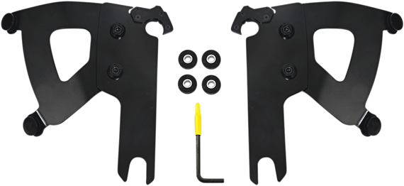 Caracteristicas: Angle Adjustable Model specific no-hassle installation, then on-off without tools. A pair of glass-filled nylon latches lock it down until the spring loaded "Trigger-Locks" are intentionally disengaged. Made exclusively of electrocoated aluminum and stainless steel, with stainless steel fasteners. Anchoring hardware is the same for all windshields and fairings for each bike. Made in the U.S.A. - Made in Memphis!