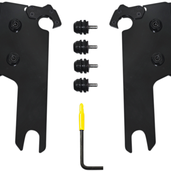Caracteristicas: Angle Adjustable Model specific no-hassle installation, then on-off without tools. A pair of glass-filled nylon latches lock it down until the spring loaded "Trigger-Locks" are intentionally disengaged. Made exclusively of electrocoated aluminum and stainless steel, with stainless steel fasteners. Anchoring hardware is the same for all windshields and fairings for each bike. Made in the U.S.A. - Made in Memphis!