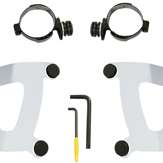 Caracteristicas: Angle Adjustable Model specific no-hassle installation, then on-off without tools. A pair of glass-filled nylon latches lock it down until the spring loaded "Trigger-Locks" are intentionally disengaged. Made exclusively of electrocoated aluminum and stainless steel, with stainless steel fasteners. Anchoring hardware is the same for all windshields and fairings for each bike. Made in the U.S.A. - Made in Memphis!