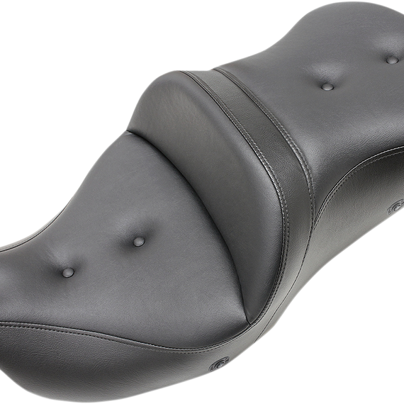 Caracteristicas: Saddlemen's premier touring seat family, engineered and styled to add superb comfort and quality to a Harley-Davidson Trike model Extra plush saddle as compared to a standard Road Sofa so it’s well suited for the extra seat time a Trike rider experiences Specially designed seat pan mates perfectly with the shape of the Trike chassis and does not interfere with the passenger grab rail Exclusive, unique split-cushion design separates the seating surface from the lumbar support, reducing tailbone and back pressure for maximum long-range comfort Seat's styling and function is unaffected by switches or wiring SaddleGel™ in front and rear increases comfort for both driver and passenger Supple SaddleHyde™ offers a combination of comfort, glove-soft leathery feel, weather-resistance and no-maintenance good looks Large and comfortable passenger area prevents sliding forward while offering a thick GEL/Foam cushion for a high degree of comfort Made in the U.S.A.