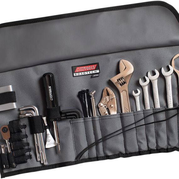 Caracteristicas: This kit includes a mini ratchet with 2” extension and sockets (8mm, 10mm, 12mm, 13mm), 6 torx keys, 5 hex keys, 6-in-1 screwdriver, locking pliers, duct tape, thread-lock, cable ties, mechanics wire, and tire pressure gauge, combination wrenches (8mm, 10mm, 12mm, 13mm), an 8” adjustable wrench, and 34mm rear axle wrench and 10x12x19x22mm hex adapter for BMW axles & drain plugs Complete travel tool kit for road-side repairs & adjustments Designed for BMW Motorcycles 2019 and on Organized in durable roll-up pouch