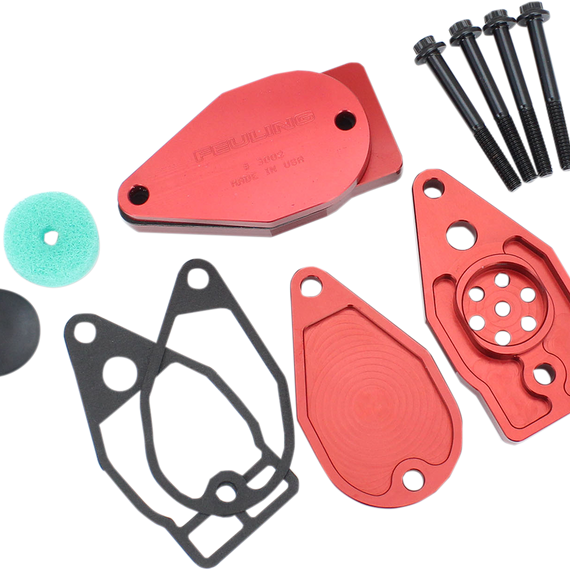 Caracteristicas: Kit includes billet breather housings, gaskets, breather filter elements, umbrella valves, top rocker cover gaskets and ARP® hardware Machined from billet 6061 aluminum with square surfaces promoting excellent gasket and breather system sealing Properly sized breather holes for optimum engine breathing Made in the U.S.A.
