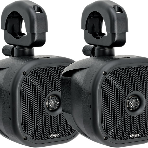 Caracteristicas: Made for side x sides, open station tractors and ZTR mowers Full range of audio reproduction through 6.5" polypropylene woofer with 1" silk dome tweeter 100W max power IPX5 waterproof Made from ASTM B117 corrosion resistant materials and has a D4329 UV stable finish Aluminum mounting clamp with square and round plastic clamp adapters Fits round bars: 1-5/8" to 3" Fits square bars: 3 x 1-1/2" and 3" x 2"