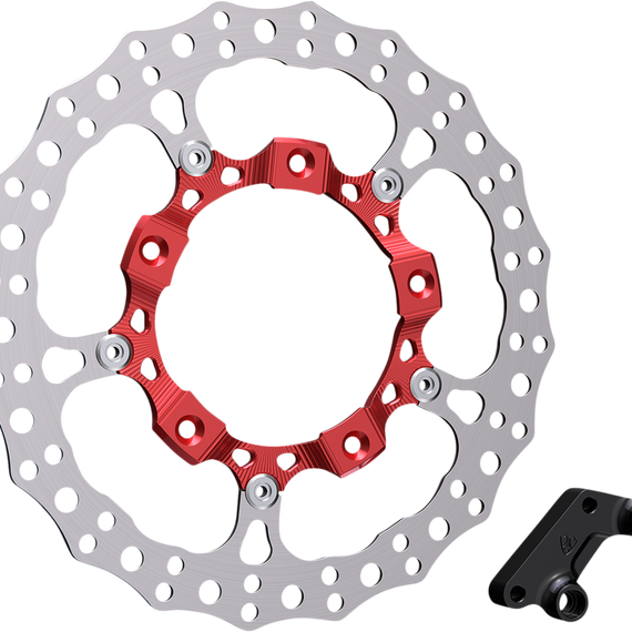 • Each 14” full floating rotor is constructed from 420 stainless steel outer disc that is drilled for optimum performance and a 6061-billet inner carrier