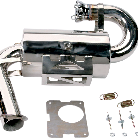 Caracteristicas: Extra kick with less weight, saves up to 9 lb. of dead weight Unique first in the industry; Dual Stage acoustical design Pull up to five more horsepower from the sled's motor, depending on the application Rumble Pack Silencer Kits attach to stock exhaust pipes and include complete instructions No modifications to belly pan required for installation Single canister design with polished stainless steel for a long-lasting finish