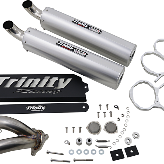 Caracteristicas: Stage 5 System provides significant horsepower and torque gains Designed specifically for the new RZR Pro XP 304 stainless steel pipes with dual aluminum mufflers 6061 Billet Muffler Clamps and 6061 Billet Machined Exhaust Tips Includes oxygen sensor bung and USFS approved spark arrestors Fully Tig Welded Made in the USA