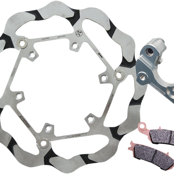 Caracteristicas: Kits include a semifloating disk S3 Batfly series rotor and bracket for OEM caliper and a set of sintered CM46 pads The rotor's outer braking track is separated in three areas from the carrier to give it a semi-floating design; this allows for heat dissipation and also limits the instant feeling of a stopped wheel when the brake is applied