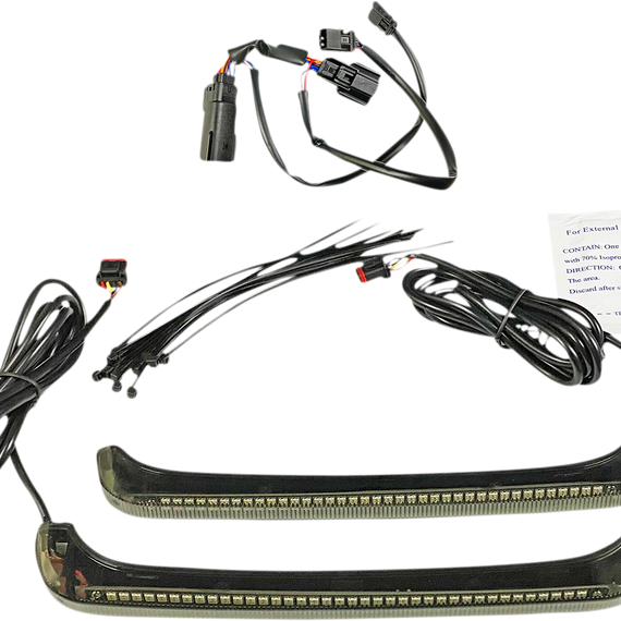 Caracteristicas: Sleek 7/16” low-profile design Mount to the top edge on OEM saddlebags In-line disconnect for quick removal of saddlebags Units are completely sealed Red running and brake light with sequential amber turn signals Come pre-taped and include a plug-and-play wiring adapter for easy installation