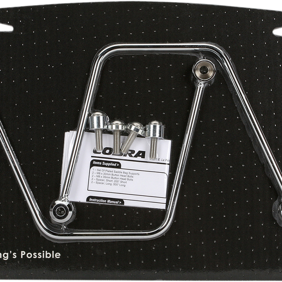 Caracteristicas: Keep throw-over saddlebags from getting tangled in the rear wheel Attach to existing mounting points for easy installation; custom-fit to each bike Made of thick steel tubing bent to fit each bike model and then polished and powder coated Safety feature for riders and saddlebags alike Made in the U.S.A.