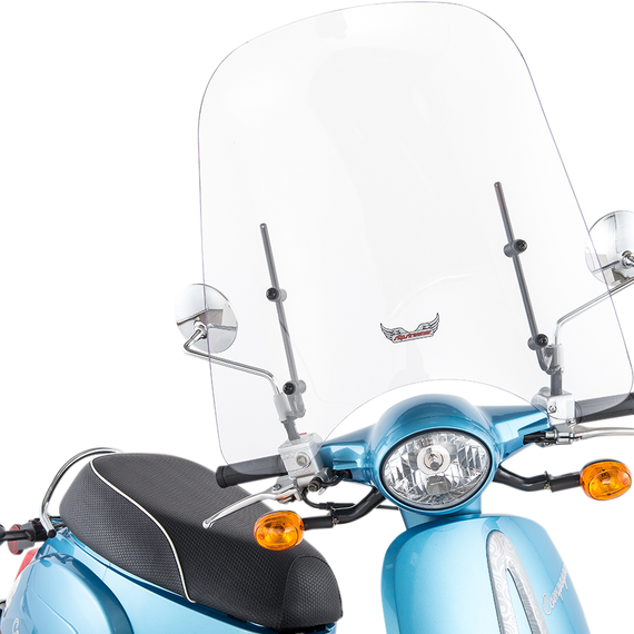 Caracteristicas: Manufactured out of .150 Lucite acrylic Mounts securely to mirrors using anodized aluminum and powder-coated steel hardware Fits most scooters with 8mm mirror threads Made in the U.S.A.