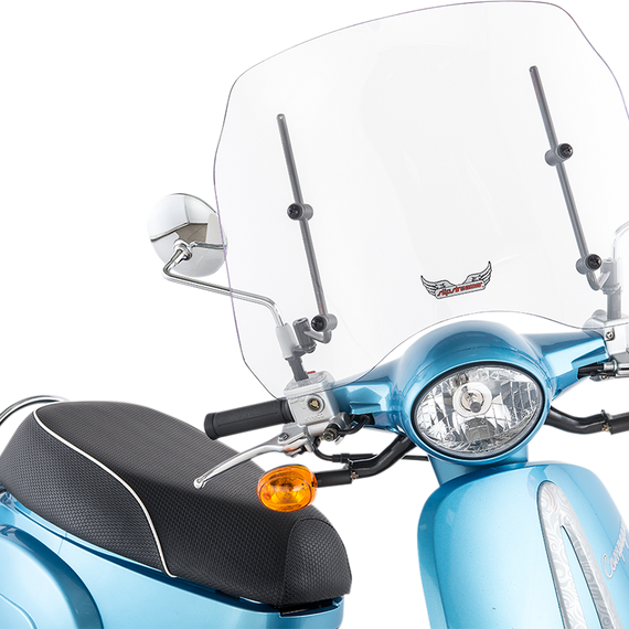 Caracteristicas: Manufactured out of .150 Lucite acrylic Mounts securely to mirrors using anodized aluminum and powder-coated steel hardware Fits most scooters with 8mm mirror threads Made in the U.S.A.