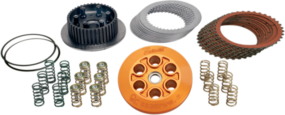 Caracteristicas: Greatly increases clutch capacity Provides smoother shifting, more progressive engagement Multiple spring pressure options Includes steel hub, billet pressure plate, clutch plates, and coil springs Designed to fit the stock type basket Ideal for stock to high performance applications