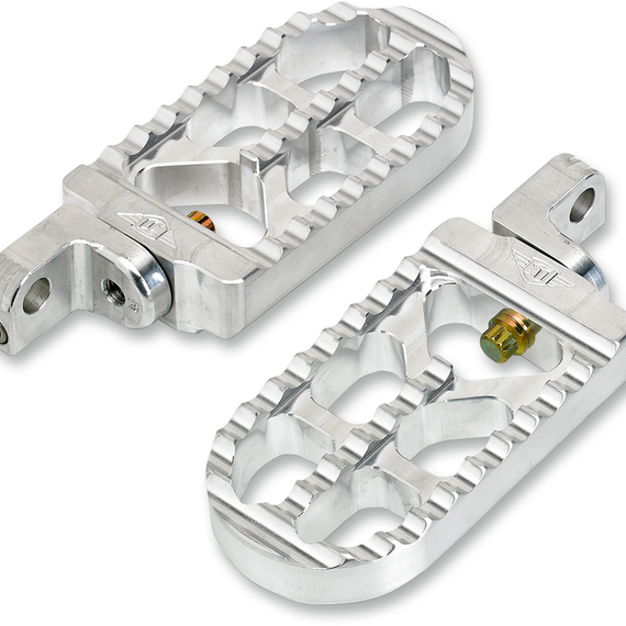 • Give your bike a unique design twist with these all-billet aluminum adjustable serrated footpegs