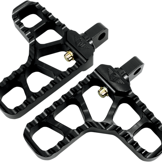 • Give your bike a unique design twist with these all-billet aluminum adjustable serrated footpegs