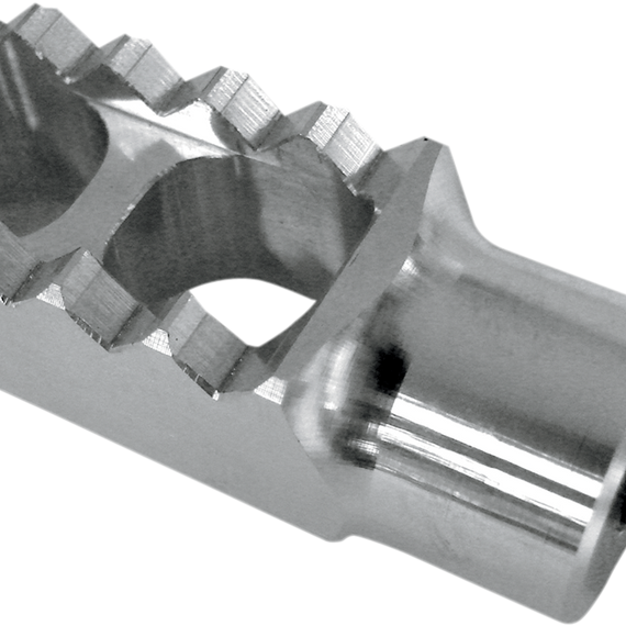 • Serrated shift pegs have serrations on the top surface only, and the bottom side is smooth to provide non-shoe-damaging up-shifts - installs easily to most stock H-D shift arms with a threaded 5/16"-24 mounting hole
