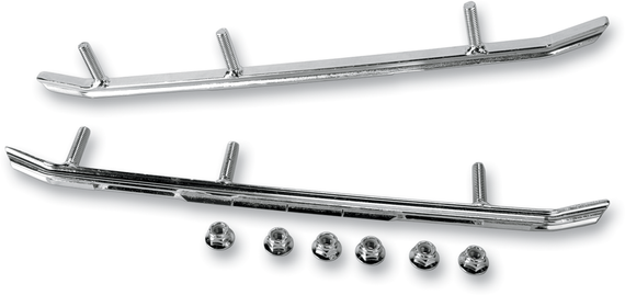 Caracteristicas: The first major breakthrough in wear bar technology since the 1950s Unique corner-carving hourglass design yields better control at speed with no increased steering effort Better tracking on trails - hourglass wear bar shape catches snow from ski sides to make steering more positive Average of 1' - 2' tighter turning radius in soft snow conditions 20% lighter than conventional 1/2" diameter round wear bars Zinc-plated for corrosion resistance Lifetime wear rate is nearly equal to current round and square wear bar types Manufactured by Stud Boy Designed and tested by USI Some models require drilling extra holes in the skis.