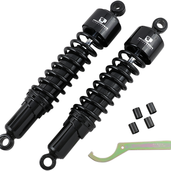 Caracteristicas: Nitrogen-charged shocks with multi-stage, velocity-sensitive valving automatically adjust to riding conditions Complete shock assemblies include chrome springs and covers Designed specifically for cruiser and touring bikes Progressively wound steel spring provides superior ride and handling A five-position cam-style preload adjuster allows you to dial in your ride Heavy Duty HD applications recommended for bikes operated at or near maximum load rating over 50% of the time. Before purchasing or attempting to install shocks that are different than the OEM length, confirm that your wheel travel can be altered without causing clearance issues such as swingarm/axle to exhaust contact as well as chain/belt guard or tire contact.