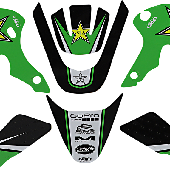 Caracteristicas: Includes left and right shroud, airbox and tank decals (if applicable) Produced with super think Ultra Curve vinyl and Moto specific adhesives Made in the USA