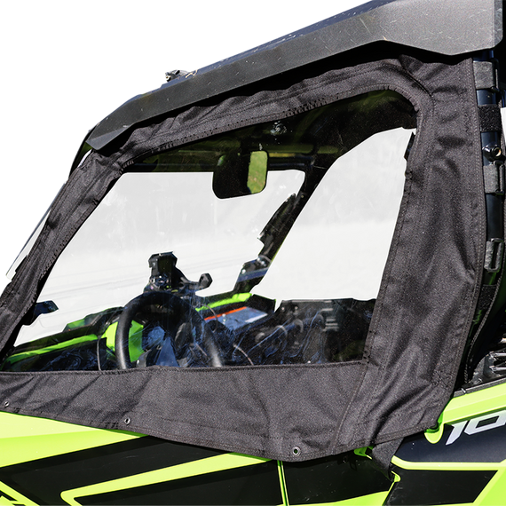 Caracteristicas: 600 denier polyester shell Automotive grade clear flexible acrylic side windshield sewn in upper section of doors Doors are completely removable and have full length #10 double pull zippers Installation is simple using clamps on each side of enclosure attaching to roll bars for a solid weatherproof seal Comes complete with necessary self adhesive Velcro used on top of doors, as well as installation and care instructions. Doors can be totally removed for added ventilation on warmer days