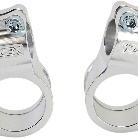 Caracteristicas: Vortex Clip-Ons are an economical replacement handlebar with amazing strength Machined from solid billet with a removable handlebar Handlebar tube can be replaced without buying an entire new Clip-On assembly because handlebar is not welded to clamp Clamp is CNC machined from a solid block of 7075-T6 aluminum Machined plastic bar ends and stainless steel fasteners Kit includes both collars, two handlebar tubes with plastic ends and high tensile strength fasteners Order by size of fork tube Made in the U.S.A. Vortex Bar Ends will also work with Vortex tubes
