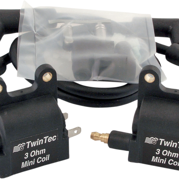 Caracteristicas: Miniature coil intended for custom motorcycles where space is at a premium and a single-fire coil is required for maximum performance 3 ohm primary is compatible with Twin Tec ignitions and most newer aftermarket single-fire ignitions Kit includes two coils, universal spark plug wire set, 90° and 135° spark plug boots and all required electrical terminals Coils also available separately (two coils required per application) Coil measures 2.4" L x 2.3" H x 1.6" W; weight is 7 oz. (198.45 g)