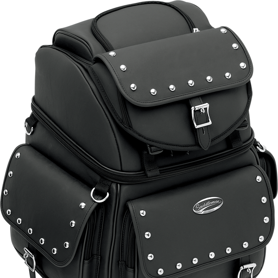 • Two mounting systems included: Saddlemen's Versa Mount™ seat harness or adjustable sissy bar strap system easily attach bag to motorcycle seat, luggage rack, or sissy bar