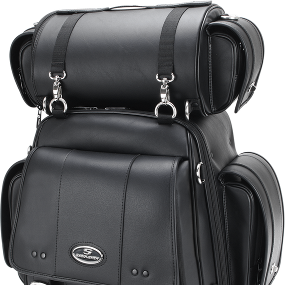 • Includes top roll bag for extra cargo capacity; top cargo straps mount roll bag, strap down jacket or rain gear