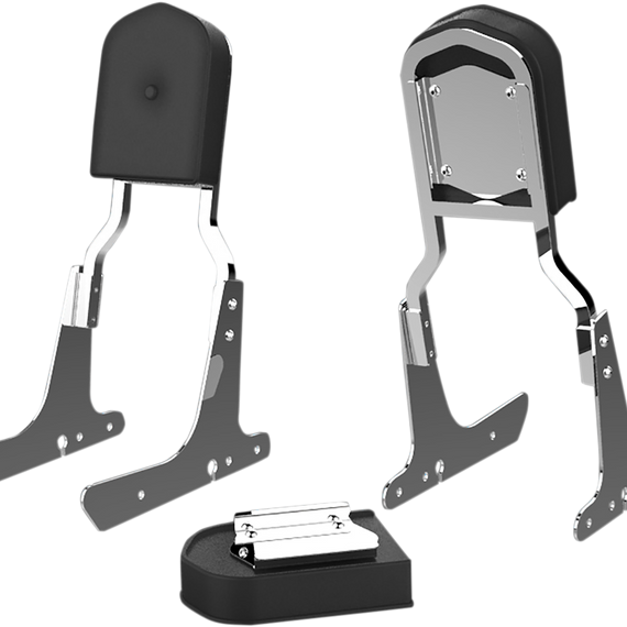 Caracteristicas: Constructed with custom black vinyl and recessed on the back side Pads wrap around the sissy bar when installed Each pad features a chrome wraparound mounting bracket and button-head screws Made in the U.S.A.