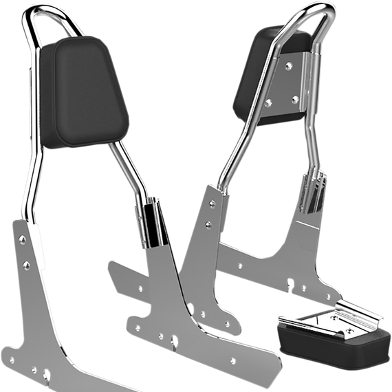 Caracteristicas: Constructed with custom black vinyl and recessed on the back side Pads wrap around the sissy bar when installed Each pad features a chrome wraparound mounting bracket and button-head screws Made in the U.S.A.