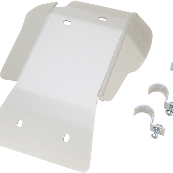 Caracteristicas: Protect vital engine parts and cases from rocks and debris Clear anodized for corrosion protection and good looks Skid plates made from 3/16" 5052 H-32 aluminum Smooth underside won't snag when crossing logs Oil drain hole on all required models Heat-treated chromoly steel clamps keep plates mounted securely All mounting hardware included Made in the U.S.A.