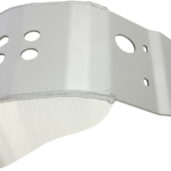 Caracteristicas: Protect vital engine parts and cases from rocks and debris Clear anodized for corrosion protection and good looks Skid plates made from 3/16" 5052 H-32 aluminum Smooth underside won't snag when crossing logs Oil drain hole on all required models Heat-treated chromoly steel clamps keep plates mounted securely All mounting hardware included Made in the U.S.A.