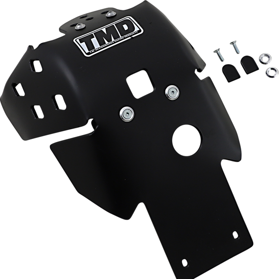 Caracteristicas: Composite impact absorbing plastic with silicone additive to reduce friction Built for rough MX, off-road and enduro riders who need maximum racing protection TMD skid plates are designed to allow maximum frame flex Precision-formed (not molded) with no welds to crack or creak Up to 45% lighter than aluminum skid plates and reduced engine bounced to the rider 35% lighter than alloy plates All hardware is 100% replaceable Covers frame rails, water pump and ignition cover Reduces noise and vibration Engineered to provide the best overall coverage