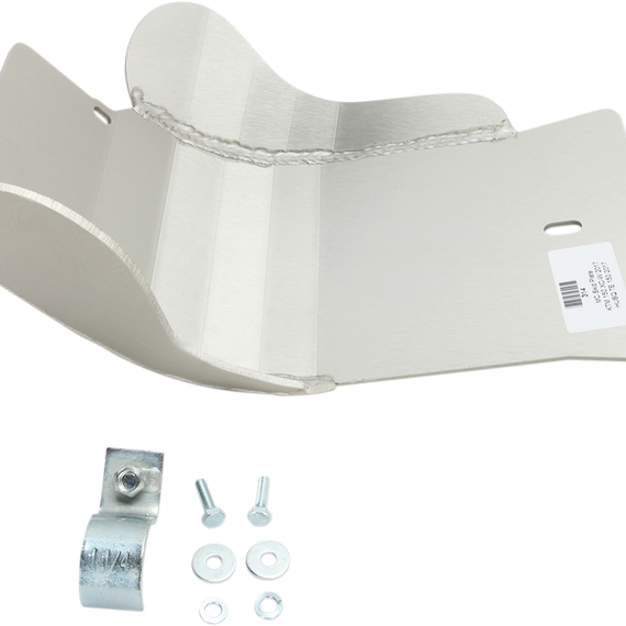 Caracteristicas: Protect vital engine parts and cases from rocks and debris Clear anodized for corrosion protection and good looks Skid plates made from 3/16" 5052 H-32 aluminum Smooth underside won't snag when crossing logs Oil drain hole on all required models Heat-treated chromoly steel clamps keep plates mounted securely All mounting hardware included Made in the U.S.A.