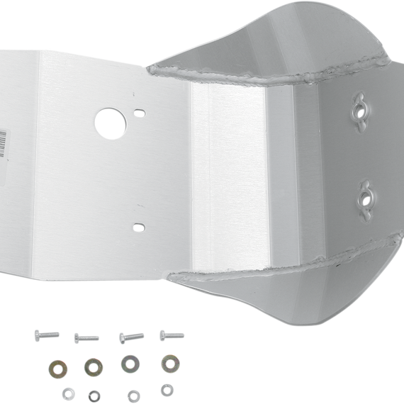 Caracteristicas: Protect vital engine parts and cases from rocks and debris Clear anodized for corrosion protection and good looks Skid plates made from 3/16" 5052 H-32 aluminum Smooth underside won't snag when crossing logs Oil drain hole on all required models Heat-treated chromoly steel clamps keep plates mounted securely All mounting hardware included Made in the U.S.A.