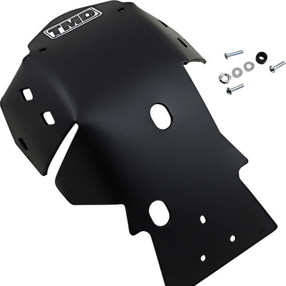 Caracteristicas: Composite impact absorbing plastic with silicone additive to reduce friction Built for rough MX, off-road and enduro riders who need maximum racing protection TMD skid plates are designed to allow maximum frame flex Precision-formed (not molded) with no welds to crack or creak Up to 45% lighter than aluminum skid plates and reduced engine bounced to the rider 35% lighter than alloy plates All hardware is 100% replaceable Covers frame rails, water pump and ignition cover Reduces noise and vibration Engineered to provide the best overall coverage