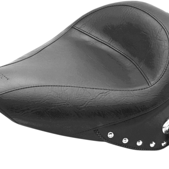 Caracteristicas: Studded style is trimmed with a braided edge and conchos tied with leather Built on a steel base with support wings to hold up the full width of the foam bucket Top covering of highest-quality expanded vinyl Matching rear seat; sold separately Made in the U.S.A.