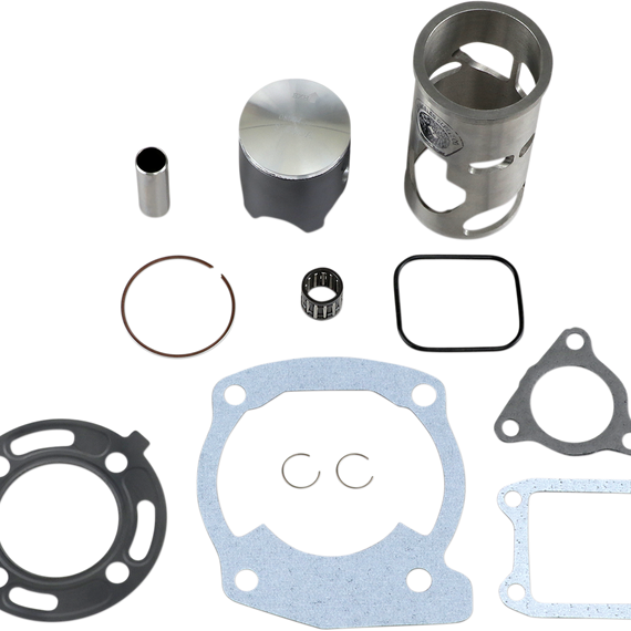 Caracteristicas: The foremost compatible top-end rebuild kit all in one box Feature a Moly2000 centrifugally-spun, cast cylinder sleeved iron bore to provide better ring seal for better compression, more torque and more horsepower 2-stroke kit comes complete with wear-resistant Moly2000 centrifugally-spun, cast cylinder sleeve, matching pro-forged or pro-cast piston kit, wrist pin bearing and complete top-end gasket set