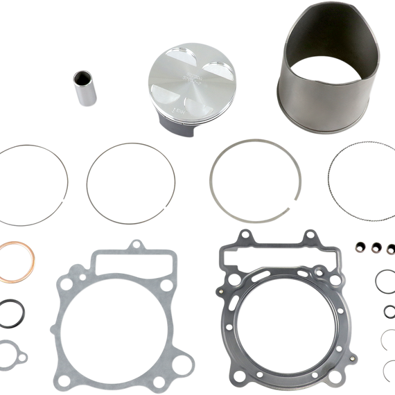 Caracteristicas: The foremost compatible top-end rebuild kit all in one box Feature a Moly2000 centrifugally-spun, cast cylinder sleeved iron bore to provide better ring seal for better compression, more torque and more horsepower 2-stroke kit comes complete with wear-resistant Moly2000 centrifugally-spun, cast cylinder sleeve, matching pro-forged or pro-cast piston kit, wrist pin bearing and complete top-end gasket set