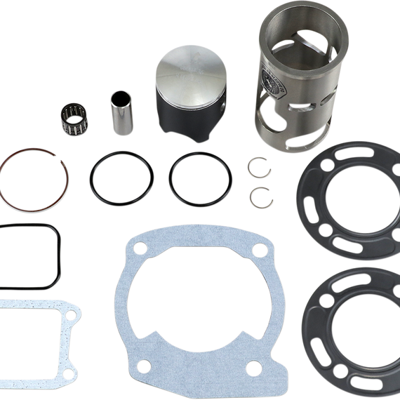 Caracteristicas: The foremost compatible top-end rebuild kit all in one box Feature a Moly2000 centrifugally-spun, cast cylinder sleeved iron bore to provide better ring seal for better compression, more torque and more horsepower 2-stroke kit comes complete with wear-resistant Moly2000 centrifugally-spun, cast cylinder sleeve, matching pro-forged or pro-cast piston kit, wrist pin bearing and complete top-end gasket set