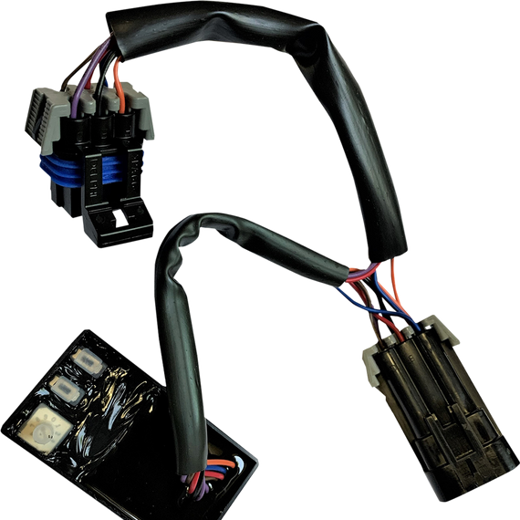 Caracteristicas: Converts rear turn signals to run-brake-turn Works with LEDs or incandescent bulbs Ten user-selectable built-in brake light strobe/flash patterns (user can also select no strobe/flash on brake) Ten user-selectable running light intensities allow user to match the running light brightness of turns to center taillight Ability to apply brake strobe/flash patterns on center taillight only, rear turns only, or rear turns and center taillight Built-in short circuit protection Sealed, weather-tight case Slim line design: 4.2" L x 1.4" W x 0.6" H